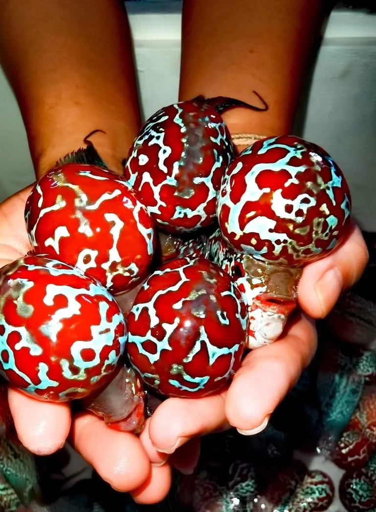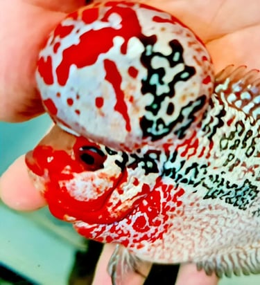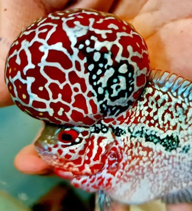 The Magma Flowerhorn is a type of Flowerhorn cichlid, a popular hybrid fish known for its vibrant colors, distinctive "hump" on its head, and unique patterns. Flowerhorn cichlids are prized in the aquarium hobby, especially in Southeast Asia, for their beauty and the belief that they bring good luck and prosperity.